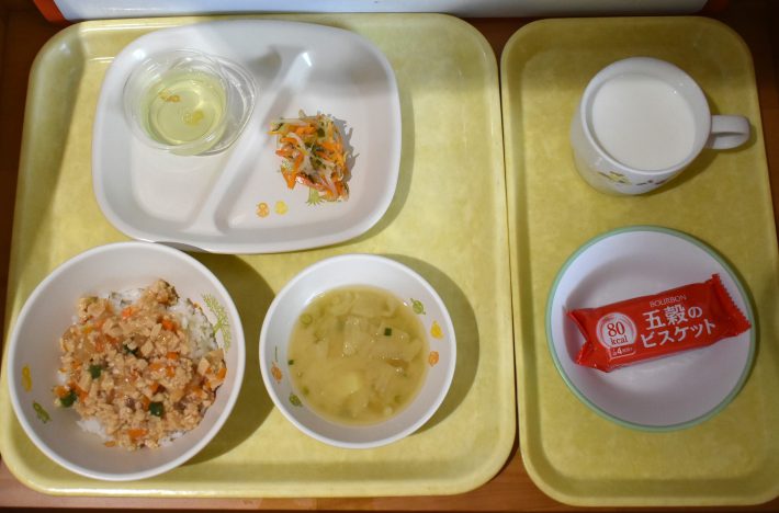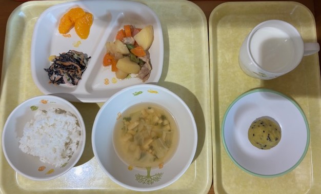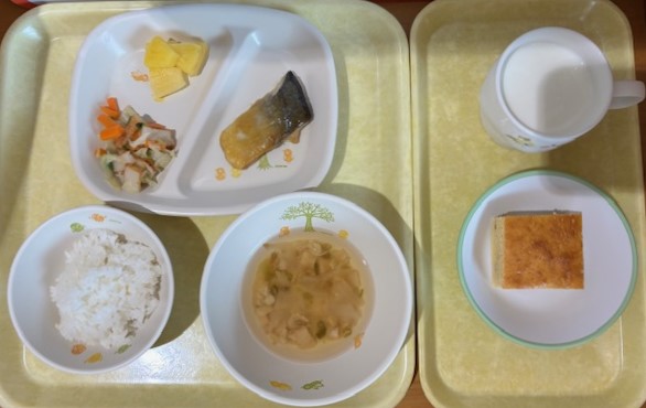 6月24日(火) 2025年06月24日 今日の給食・献立 【本日のメニュー】 【給食】 ハヤシライス マカロニサラダ パイン缶 【おやつ】 マドレーヌ風 牛乳 続きを読む 6月23日(月) 2025年06月23日 今日の給食・献立 【本日のメニュー】 【給食】 ごはん 肉豆腐 切干大根のごまサラダ 黄桃缶 みそ汁 【おやつ】 フルーツヨーグルト 牛乳 続きを読む 6月21日(土) 2025年06月21日 今日の給食・献立 【本日のメニュー】 【給食】 高野豆腐のそぼろ丼 もやしの甘酢和え ゼリー みそ汁 【おやつ】 五穀ビスケット 牛乳 続きを読む 6月20日(金) 2025年06月20日 今日の給食・献立 【本日のメニュー】 【給食】 ごはん 魚のみそ焼き さつま揚げとキャベツのソテー パイン缶 すまし汁 【おやつ】 バナナマフィン 牛乳 続きを読む 6月19日(木) 2025年06月19日 今日の給食・献立 【本日のメニュー】 【給食】 ごはん 鶏じゃが ひじきのサラダ みかん缶 すまし汁 【おやつ】 黒ゴマ茶きん 牛乳 続きを読む 12345