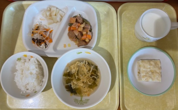8月23日(土) 2025年08月23日 今日の給食・献立 【本日のメニュー】 【給食】 ピラフ 大根サラダ ゼリー コンソメスープ 【おやつ】 五穀ビスケット 牛乳 続きを読む 8月22日(金) 2025年08月22日 今日の給食・献立 【本日のメニュー】 【給食】 木の葉丼 ブロッコリーの赤しそ和え みかん缶 すまし汁 【おやつ】 きな粉揚げパン 牛乳 続きを読む 8月21日(木) 2025年08月21日 今日の給食・献立 【本日のメニュー】 【給食】 ごはん 魚の塩焼き 南瓜のそぼろ煮 パイン缶 みそ汁 【おやつ】 フルーツヨーグルト 牛乳 続きを読む 8月20日(水) 2025年08月20日 今日の給食・献立 【本日のメニュー】 【給食】 ごはん ミートボールと野菜の甘酢炒め 大根の塩昆布和え 白桃缶 かき玉汁 【おやつ】 さつま芋蒸しパン 牛乳 続きを読む 8月19日(火) 2025年08月19日 今日の給食・献立 【本日のメニュー】 【給食】 ミートスパゲティ ひじきのサラダ オレンジ コンソメスープ 【おやつ】 菜めしおにぎり 牛乳 続きを読む 12345