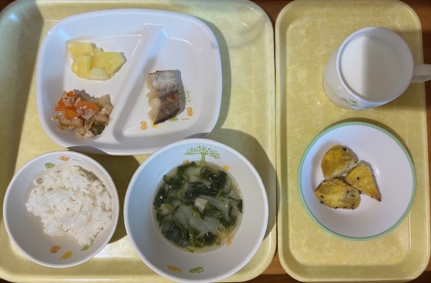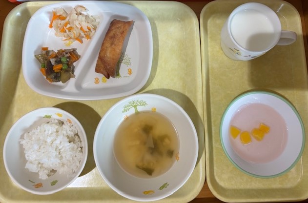 8月7日(木) 2025年08月7日 今日の給食・献立 【本日のメニュー】 【給食】 ごはん 鶏肉と大根の旨煮 野菜のナムル みかん缶 すまし汁 【おやつ】 ピザトースト 牛乳 続きを読む 8月6日(水) 2025年08月6日 今日の給食・献立 【本日のメニュー】 【給食】 冷やしうどん 焼売 バナナ 【おやつ】 そぼろおにぎり 牛乳 続きを読む 8月5日(火) 2025年08月5日 今日の給食・献立 【本日のメニュー】 【/給食】 ごはん 魚のバター醤油焼き 豆腐のチャンプルー パイン缶 みそ汁 【おやつ】 大学芋 牛乳 続きを読む 8月4日(月) 2025年08月4日 今日の給食・献立 【本日のメニュー】 【給食】 ごはん 春巻 豚肉と茄子の甘辛炒め キャベツの酢の物 すまし汁 【おやつ】 ピーチゼリー 牛乳 続きを読む 8月2日(土) 2025年08月2日 今日の給食・献立 【本日のメニュー】 【給食】 チキンライス さっぱりサラダ ゼリー コンソメスープ 【おやつ】 ぽたぽた焼 牛乳 続きを読む 12345