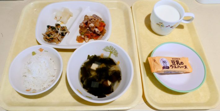 9月9日(火) 2025年09月9日 今日の給食・献立 【本日のメニュー】 【給食】 ごはん 魚のみそ焼き きのことこんにゃくのきんぴら 大根とコーンのサラダ すまし汁 【おやつ】 スイートポテト 牛乳 続きを読む 9月8日(月) 2025年09月8日 今日の給食・献立 【本日のメニュー】 【給食】 ミートスパゲティ ツナとブロッコリーのサラダ オレンジ コンソメスープ 【おやつ】 ピラフおにぎり 牛乳 続きを読む 9月6日(土) 2025年09月6日 今日の給食・献立 【本日のメニュー】 【給食】 ごはん 鶏肉と厚揚げと大根の旨煮 もやしのごま和え 白桃缶 すまし汁 【おやつ】 豆乳ウエハース 牛乳 続きを読む 9月5日(金) 2025年09月5日 今日の給食・献立 【本日のメニュー】 【給食】 ごはん 魚のスタミナ焼き ひじきの煮物 白菜の酢の物 みそ汁 【おやつ】 アップルパンケーキ 牛乳 続きを読む 9月4日(木) 2025年09月4日 今日の給食・献立 【本日のメニュー】 【給食】 豚肉と野菜のみそ炒め丼 切干大根のごまサラダ みかん缶 かき玉汁 【おやつ】 ピザ餃子 牛乳 続きを読む 12345