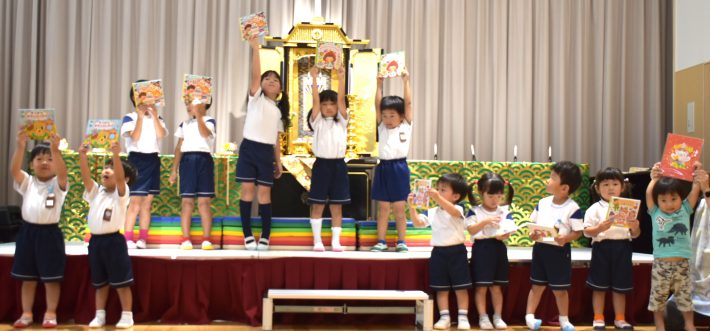 月組 園外保育 干潟よか公園(10/7) 2025年10月10日 光生幼稚園ブログ 日中はまだ残暑が厳しい日が続いていますが、 朝晩は風が少しずつ秋の訪れを感じます。 月組さんが干潟よか公園に行ってきました! 滑り台 滑り台 あれっ?!ゆらゆらする! 上手に乗りこなせます!! 待ち方も上手です(^O^)/ 次はあれに行こう(^^)v どんな場所でも思わず こうなっちゃ… 続きを読む 夕涼み会(10/4) 2025年10月6日 光生幼稚園ブログ 生い茂る木々が秋色に染まり始めました。 残暑が厳しかったですが、ようやく秋の気配が 感じられるようになりましたね(^O^) あいにくの天候ではありましたが、 夕涼み会を開催しました。 いつもと違う雰囲気の幼稚園に、 いつもよりかっこいい・かわいい洋服や 甚平・浴衣に着替えて登園する子ど… 続きを読む 10月生まれの誕生会(10/1) 2025年10月3日 光生幼稚園ブログ 虫の声や木々の色づきに秋の深まりを 感じる頃となりました。 10月の誕生会を始めます☆ 月組の献灯献華から 始めの言葉&終わりの言葉 誕生者の入場です 月組 星組 花組 もも組 つぼみ組 言葉と絵本のプレゼント 先生たちの出し物は『へんしんトンネル』 何が出… 続きを読む 12