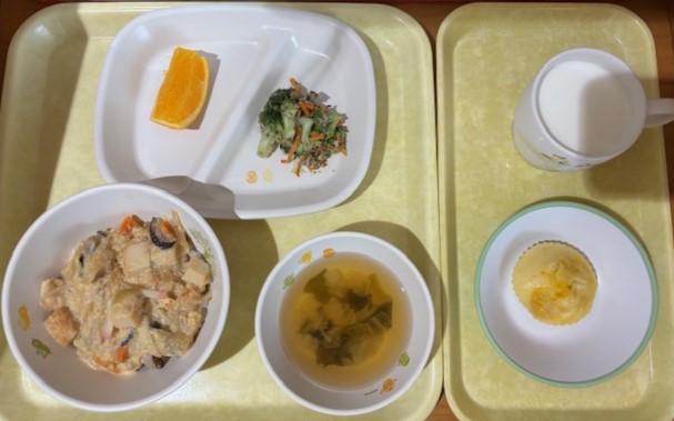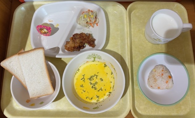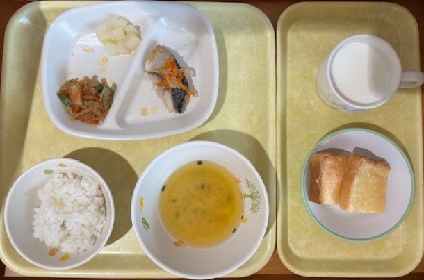 10月25日(土) 2025年10月25日 今日の給食・献立 【本日のメニュー】 【給食】 チキンライス さっぱりサラダ ゼリー コンソメスープ 【おやつ】 五穀ビスケット 牛乳 続きを読む 10月24日(金) 2025年10月24日 今日の給食・献立 【本日のメニュー】 【給食】 ごはん 魚の焼南蛮 大根のきんぴら 白桃缶 みそ汁 【おやつ】 メロンパントースト 牛乳 続きを読む 10月23日(木) 2025年10月23日 今日の給食・献立 【本日のメニュー】 【給食】 食パン ミニ鶏肉の唐揚げ キャベツのサラダ ゼリー パンプキンクリームスープ 【おやつ】 炒飯おにぎり 牛乳 続きを読む 10月22日(水) 2025年10月22日 今日の給食・献立 【本日のメニュー】 【給食】 木の葉丼 ブロッコリーの赤しそ和え オレンジ すまし汁 【おやつ】 かぼちゃ蒸しパン 牛乳 続きを読む 10月21日(火) 2025年10月21日 今日の給食・献立 【本日のメニュー】 【給食】 ごはん 家常豆腐 ちくわの中華衣揚げ 黄桃缶 すまし汁 【おやつ】 フルーツヨーグルト 牛乳 続きを読む ‹ 前へ1234次へ ›最後へ »