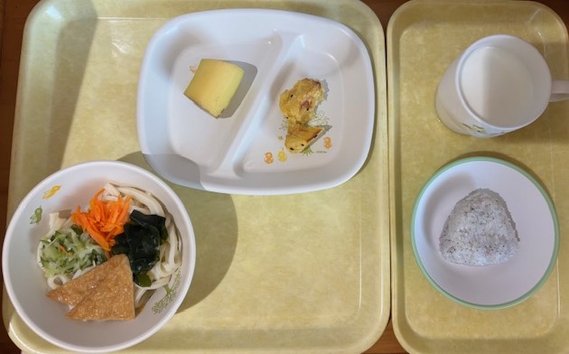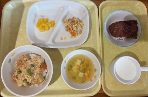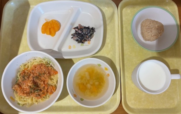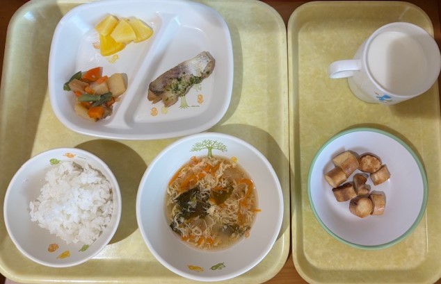 10月20日(月) 2025年10月20日 今日の給食・献立 【本日のメニュー】 【給食】 ミートスパゲティ ひじきのサラダ みかん缶 コンソメスープ 【おやつ】 そぼろおにぎり 牛乳 続きを読む 10月18日(土) 2025年10月18日 今日の給食・献立 【本日のメニュー】 【給食】 ごはん 肉豆腐 もやしの酢の物 ゼリー すまし汁 【おやつ】 豆乳ウエハース 牛乳 続きを読む 10月17日(金) 2025年10月17日 今日の給食・献立 【本日のメニュー】 【給食】 ごはん 魚の磯辺焼き 丸天とじゃが芋の旨煮 パイン缶 かき玉汁 【おやつ】 麩のシュガーバター 牛乳 続きを読む 10月16日(木) 2025年10月16日 今日の給食・献立 【本日のメニュー】 【給食】 親子丼 キャベツのごま酢和え 黄桃缶 みそ汁 【おやつ】 ココア揚げパン 牛乳 続きを読む 10月15日(水) 2025年10月15日 今日の給食・献立 【本日のメニュー】 【給食】 冷やしきつねうどん 大学芋 バナナ 【おやつ】 赤しそおにぎり 牛乳 続きを読む ‹ 前へ12345次へ ›最後へ »