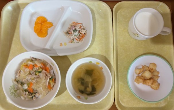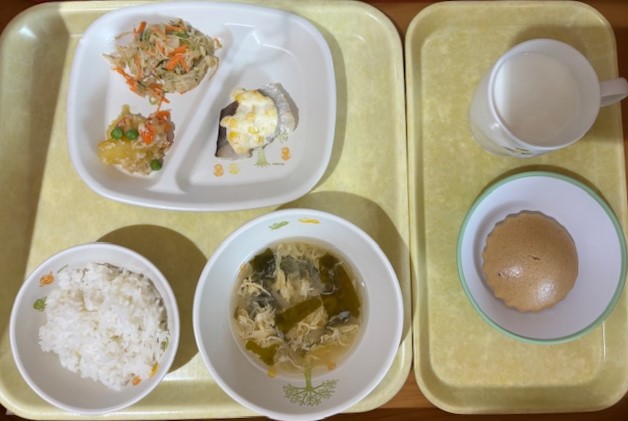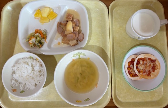 12月4日(木) 2025年12月5日 今日の給食・献立 【本日のメニュー】 【給食】 ごはん おでん風煮 白菜の酢の物 パイン缶 みそ汁 【おやつ】 ピザ餃子 牛乳 続きを読む 12月3日(水) 2025年12月3日 今日の給食・献立 【本日のメニュー】 【給食】 中華丼 切干大根のごまサラダ みかん缶 すまし汁 【おやつ】 じゃがちゃん 牛乳 続きを読む 12月2日(火) 2025年12月2日 今日の給食・献立 【本日のメニュー】 【給食】 ごはん 魚のコーンマヨネーズ焼き さつま芋のそぼろ煮 キャベツのナムル かき玉汁 【おやつ】 黒糖蒸しパン 牛乳 続きを読む 12月1日(月) 2025年12月1日 今日の給食・献立 【本日のメニュー】 【給食】 ごはん メンチカツ ビーフンソテー 黄桃缶 みそ汁 【おやつ】 パインゼリー 牛乳 続きを読む 令和7年12月献立予定表 2025年12月1日 今日の給食・献立 ◆献立表(2025年12月)光生幼稚園 ◆献立表・離乳食(2025年12月)光生幼稚園 続きを読む 12345