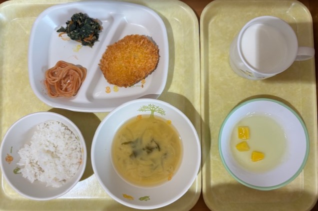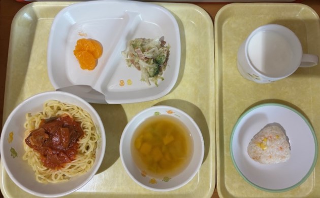1月7日(水) 2026年01月7日 今日の給食・献立 【本日のメニュー】 【給食】 鶏肉と茄子のスパゲティ ベーコンとキャベツのソテー みかん缶 コンソメスープ 【おやつ】 炒飯おにぎり 牛乳 続きを読む 1月6日(火) 2026年01月6日 今日の給食・献立 【本日のメニュー】 【給食】 ごはん 厚揚げ豆腐と鶏肉の卵とじ さつま芋のバター焼き 白桃缶 すまし汁 【おやつ】 ココア揚げパン 牛乳 続きを読む 1月5日(月) 2026年01月5日 今日の給食・献立 【本日のメニュー】 【給食】 ごはん 野菜コロッケ スパゲティケッチャップソテー ほうれん草のごま和え みそ汁 【おやつ】 マスカットゼリー 牛乳 続きを読む 令和8年1月献立予定表 2026年01月1日 今日の給食・献立 ◆献立表(2026年1月)光生幼稚園 続きを読む 12345