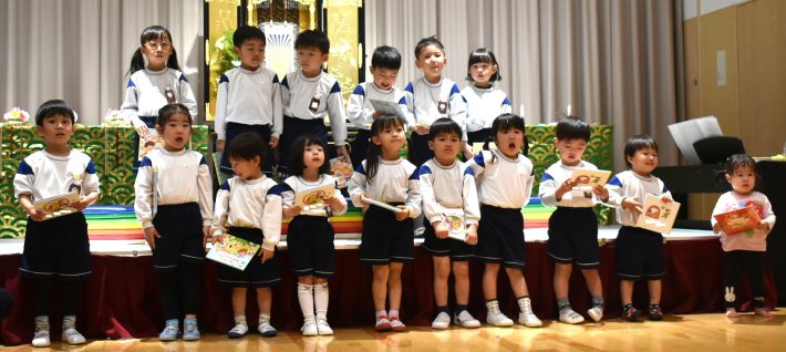 3学期 終業式(3/19) 2026年03月23日 光生幼稚園ブログ 暖かい日も増えてきて、冬の終わりを感じる 今日この頃。今年度も3学期の終業式を 迎えることができました。 こんなに上手にお参りができるように なったんですよ(^^♪ お部屋に戻ると せいきんしょうを貰ったよ! 荷物の整理 忘れないでね 王冠つけたよ👑 楽しいね(^o^) 小さな経験をた… 続きを読む 第72回 卒園式 2026年03月18日 光生幼稚園ブログ 春光うららかな季節となり、陽ざしのぬくもりを 感じられる日が増えてきました。 先日、第72回 卒園式を 無事に終えることができました。 キラキラ輝く笑顔がいっぱいになった 卒園式✨ バスで登園(^^) おうちの方と一緒に登園 お部屋でも『ハイ、ポーズ』 卒園までをカウントダウン☆ &n… 続きを読む お別れ会(3/10) 2026年03月13日 光生幼稚園ブログ たくさん遊んだり、お手本を見せてくれたりと 色々なことを教えてくれた月組さんに 感謝の気持ちを伝えるお別れ会をしました。 プレゼントやお別れのメッセージを送りましたよ(^O^) 月組さんからはカレンダー入れを 星組さんからは証書入れを 花・もも組さんからはコサージュを 言… 続きを読む 3月生まれの誕生会(3/6) 2026年03月9日 光生幼稚園ブログ あっという間に締めくくりの月となりました。 3月生まれの誕生会を始めます。 月組さんの献灯献華です。 始めの言葉&終わりの言葉 誕生児の入場です 月組 星組 花組 もも組 つぼみ組 言葉と絵本のプレゼント 先生たちの出し物は『ロー… 続きを読む 育友会総会・保育参加(3/4) 2026年03月6日 光生幼稚園ブログ あっという間に一年の締めくくりを迎える3月になりました。 育友会総会・保育参加にご参加いただき ありがとうございました。 保育参加 この一年で子ども達は大きく成長しました。 日々の成長は少しずつですが、 一年を通してみるとできることが増え、 自信につながっています。 今後の成長も楽しみ… 続きを読む 12