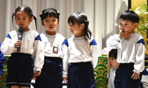 今月先生たちの出し物は『キッチンの道具で演奏会(^^♪』