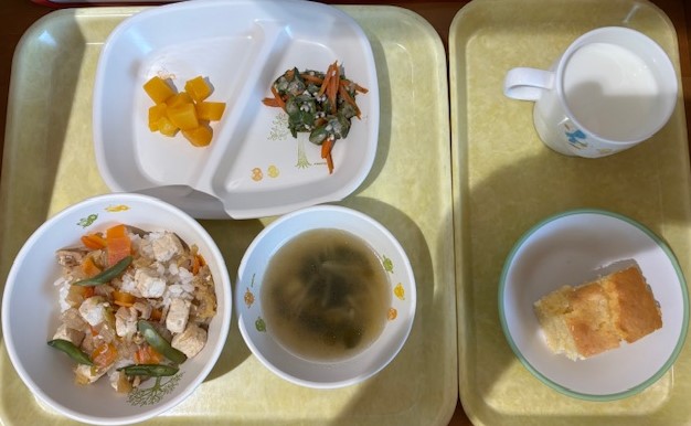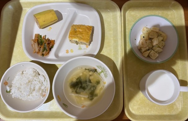 4月18日(土) 2026年04月18日 今日の給食・献立 【本日のメニュー】 【給食】 ピラフ さっぱりサラダ ゼリー コンソメスープ 【おやつ】 ぽたぽた焼 牛乳 続きを読む 4月17日(金) 2026年04月17日 今日の給食・献立 【本日のメニュー】 【給食】 野菜たっぷり鶏塩ラーメン 焼売 みかん缶 【おやつ】 塩こんぶおにぎり 牛乳 続きを読む 4月16日(木) 2026年04月16日 今日の給食・献立 【本日のメニュー】 【給食】 すき焼き風丼 オクラのごま和え 黄桃缶 中華スープ 【おやつ】 りんごマフィン 牛乳 続きを読む 4月15日(水) 2026年04月15日 今日の給食・献立 【本日のメニュー】 【給食】 ごはん 魚の甘辛焼き 大根のそぼろ煮 卵と野菜のソテー みそ汁 【おやつ】 パインゼリー 牛乳 続きを読む 4月14日(火) 2026年04月14日 今日の給食・献立 【本日のメニュー】 【給食】 ごはん 彩り卵焼き きのことこんにゃくのきんぴら バナナ すまし汁 【おやつ】 揚げじゃが 牛乳 続きを読む 123次へ ›最後へ »