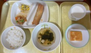 6月2日(月) 2025年06月2日 今日の給食・献立 【本日のメニュー】 【給食】 ごはん 春巻 大根のそぼろ煮 白菜の甘酢和え すまし汁 【おやつ】 アップルパンケーキ 牛乳 古い記事へ 一覧へ 新しい記事へ