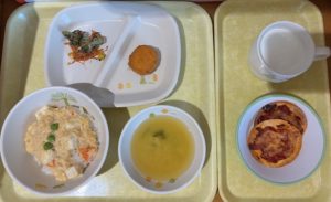 6月5日(木) 2025年06月5日 今日の給食・献立 【本日のメニュー】 【給食】 豆腐と卵のふわふわ丼 ホタテ風味フライ ブロッコリーの赤しそ和え みそ汁 【おやつ】 ピザ餃子 牛乳 古い記事へ 一覧へ 新しい記事へ