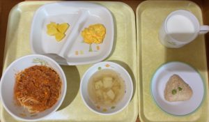 6月11日(水) 2025年06月11日 今日の給食・献立 【本日のメニュー】 【給食】 ミートスパゲティ かぼちゃサラダ パイン缶 コンソメスープ 【おやつ】 そぼろおにぎり 牛乳 古い記事へ 一覧へ 新しい記事へ