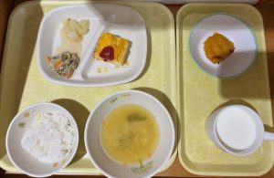 6月12日(木) 2025年06月12日 今日の給食・献立 【本日のメニュー】 【給食】 ごはん ツナとじゃが芋のオムレツ 野菜の納豆和え 白桃缶 みそ汁 【おやつ】 スイートパンプキン 牛乳 古い記事へ 一覧へ 新しい記事へ
