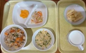 6月26日(木) 2025年06月26日 今日の給食・献立 【本日のメニュー】 【給食】 豚肉と野菜のみそ炒め丼 春雨サラダ みかん缶 かき玉汁 【おやつ】 フライドポテト 牛乳 古い記事へ 一覧へ 新しい記事へ