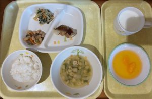 7月31日(木) 2025年07月31日 今日の給食・献立 【本日のメニュー】 【給食】 ごはん 魚のバーベキューソース 五目大豆煮 キャベツのおかか和え みそ汁 【おやつ】 オレンジゼリー 牛乳 古い記事へ 一覧へ 新しい記事へ