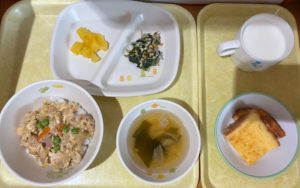 10月3日(金) 2025年10月3日 今日の給食・献立 【本日のメニュー】 【給食】 豚とじ丼 ほうれん草の納豆和え 黄桃缶 すまし汁 【おやつ】 フレンチトースト 牛乳 古い記事へ 一覧へ 新しい記事へ