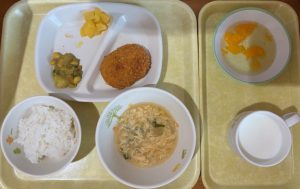 10月27日(月) 2025年10月27日 今日の給食・献立 【本日のメニュー】 【給食】 ごはん 牛肉コロッケ カレービーンズ 黄桃缶 かき玉汁 【おやつ】 青りんごゼリー 牛乳 古い記事へ 一覧へ 新しい記事へ