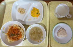 12月24日(水) 2025年12月24日 今日の給食・献立 【本日のメニュー】 【給食】 ミートスパゲティ かぼちゃサラダ 白桃缶 コンソメスープ 【おやつ】 そぼろおにぎり 牛乳 古い記事へ 一覧へ 新しい記事へ