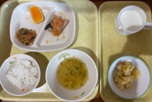 1月30日(金) 2026年01月30日 今日の給食・献立 【本日のメニュー】 【給食】 ごはん 魚の焼南蛮 大根のきんぴら オレンジ みそ汁 【おやつ】 揚げじゃが 牛乳 古い記事へ 一覧へ 新しい記事へ