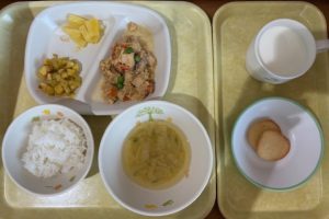 3月5日(木) 2026年03月5日 今日の給食・献立 【本日のメニュー】 【給食】 ごはん 厚揚げ豆腐と鶏肉の卵とじ さつま芋のバター焼き パイン缶 みそ汁 【おやつ】 サブレ 牛乳 古い記事へ 一覧へ 新しい記事へ