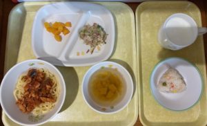 4月8日(水) 2026年04月8日 今日の給食・献立 【本日のメニュー】 【給食】 鶏肉と茄子のスパゲティ ベーコンとキャベツのソテー 黄桃缶 コンソメスープ 【おやつ】 炒飯おにぎり 牛乳 古い記事へ 一覧へ 新しい記事へ