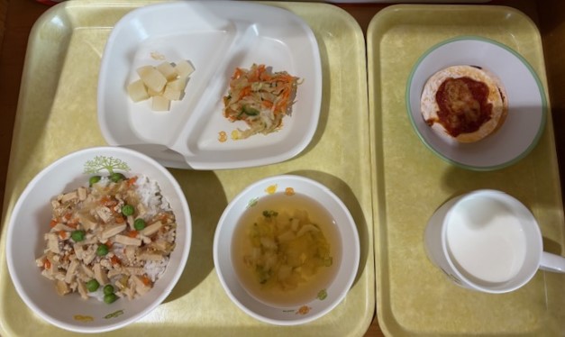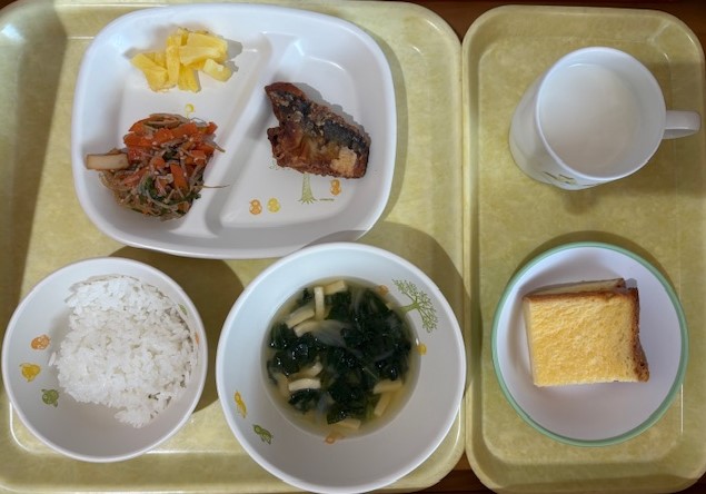 2月12日(木) 2026年02月12日 今日の給食・献立 【本日のメニュー】 【給食】 豚とじ丼 ほうれん草のごま和え 黄桃缶 すまし汁 【おやつ】 黒ゴマ茶きん 牛乳 続きを読む 2月10日(火) 2026年02月10日 今日の給食・献立 【本日のメニュー】 【給食】 ごはん 照焼ハンバーグ ブロッコリーの彩りサラダ お楽しみケーキ コンソメスープ 【おやつ】 ピーチゼリー 乳酸飲料 続きを読む 2月9日(月) 2026年02月9日 今日の給食・献立 【本日のメニュー】 【給食】 ごはん 魚の竜田揚げ きのことこんにゃくのきんぴら パイン缶 みそ汁 【おやつ】 フレンチトースト 牛乳 続きを読む 2月6日(金) 2026年02月6日 今日の給食・献立 【本日のメニュー】 【給食】 ごはん とん平焼き 野菜の納豆和え バナナ すまし汁 【おやつ】 揚げじゃが 牛乳 続きを読む 2月5日(木) 2026年02月5日 今日の給食・献立 【本日のメニュー】 【給食】 高野豆腐のそぼろ丼 キャベツのおかか和え 白桃缶 すまし汁 【おやつ】 ピザ餃子 牛乳 続きを読む « 最初へ‹ 前へ910111213次へ ›最後へ »
