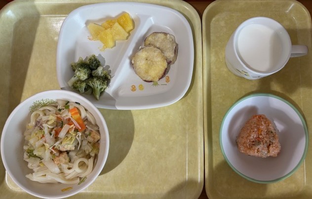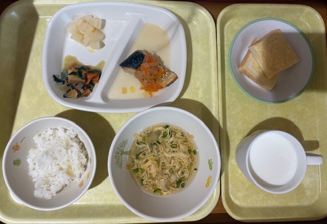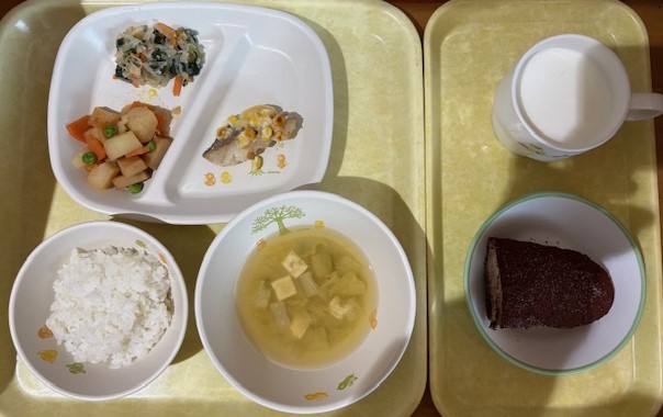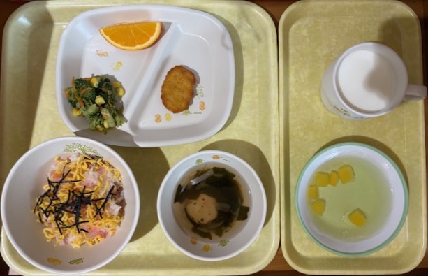 3月3日(火) 2026年03月3日 今日の給食・献立 【本日のメニュー】 【給食】 ごはん 魚のコーンマヨネーズ焼き 丸天とじゃが芋の煮物 大根のナムル みそ汁 【おやつ】 ココア揚げパン 牛乳 続きを読む 3月2日(月) 2026年03月2日 今日の給食・献立 【本日のメニュー】 【給食】 散らし寿司 チキンナゲット ブロッコリーの和え物 オレンジ すまし汁 【おやつ】 青りんごゼリー 牛乳 続きを読む 2月27日(金) 2026年03月2日 今日の給食・献立 【本日のメニュー】 【給食】 ごはん 魚の焼南蛮 丸天と野菜のソテー 白桃缶 かき玉汁 【おやつ】 メロンパントースト 牛乳 続きを読む 2月28日(土) 2026年02月28日 今日の給食・献立 【本日のメニュー】 【給食】 ごはん 鶏肉と厚揚げと大根の旨煮 もやしのごま和え ゼリー すまし汁 【おやつ】 五穀ビスケット 牛乳 続きを読む 2月26日(木) 2026年02月26日 今日の給食・献立 【本日のメニュー】 【給食】 煮込みうどん さつま芋の天ぷら 付け野菜 パイン缶 【おやつ】 ケチャップライスおにぎり 牛乳 続きを読む « 最初へ‹ 前へ678910次へ ›最後へ »