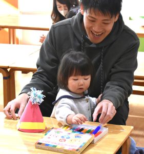 鬼の帽子を被って遊ぶ姿もありました(*^^)